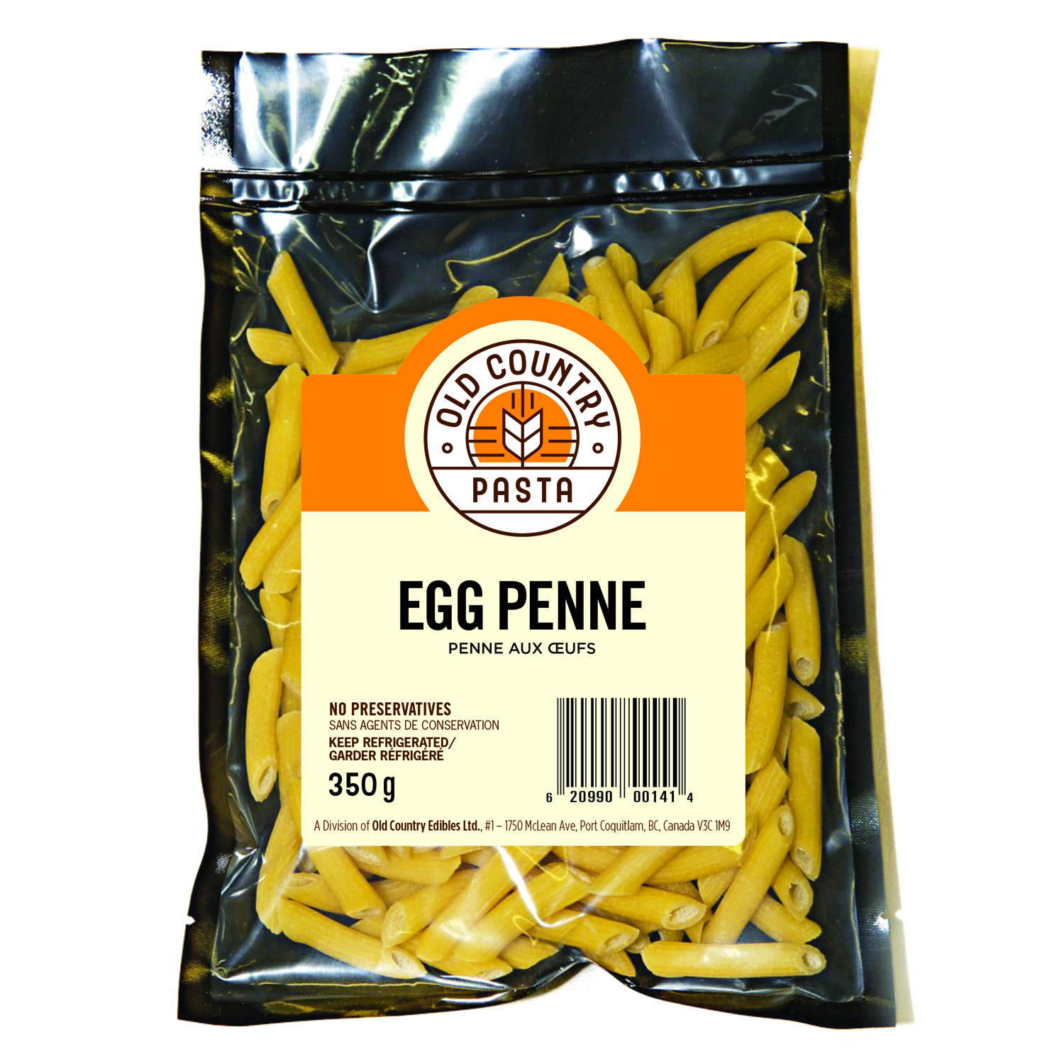 This is an Italian cut pasta consisting of medium length ridged tubes cut diagonally at both ends, made with durum semolina, egg and water. Retail Package Size: 350 grams