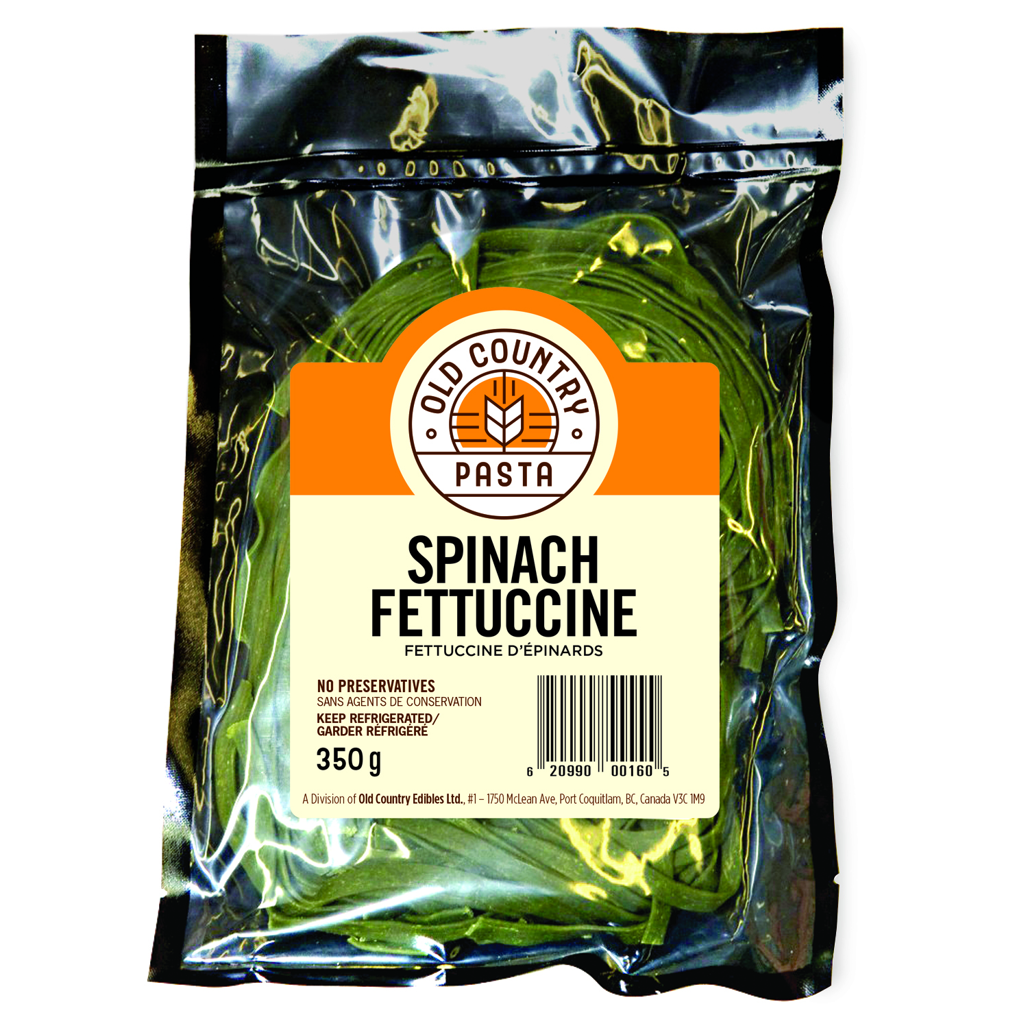 The traditional egg fettuccine done in spinach. This pasta will make you a spinach lover from the day you try it. Retail Package Size: 350 grams