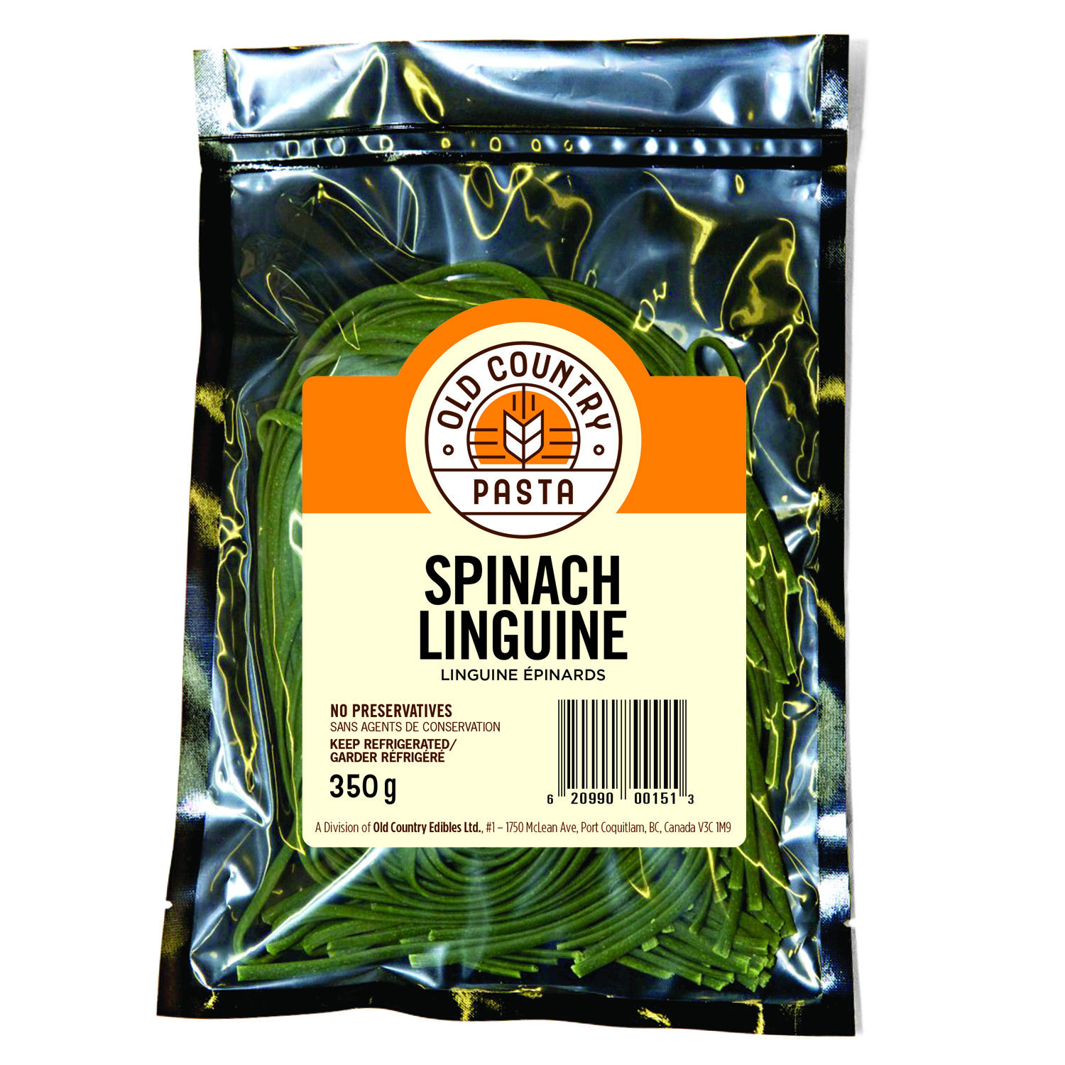 The traditional egg linguine done in spinach. This pasta will make you a spinach lover from the day you try it. Retail Package Size: 350 grams